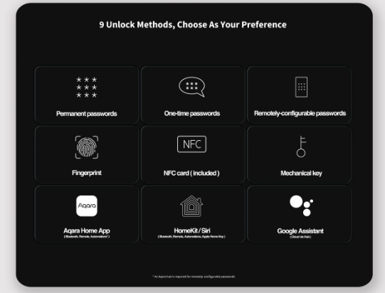 遠程解鎖:Aqara / Apple Homekit / Google Home需配合Hub使用
