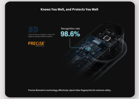 指紋:3D半導體快速指紋讀取器,指紋準確率:98.6%,最多支援50個指紋