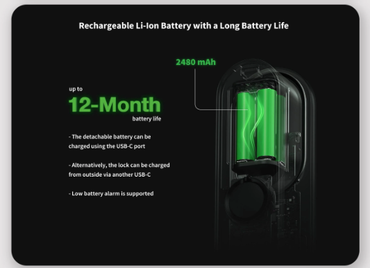 電池續航力加長 - 長逹12個月的電池壽命,支援低電量提醒功能;支援Type C緊急充電