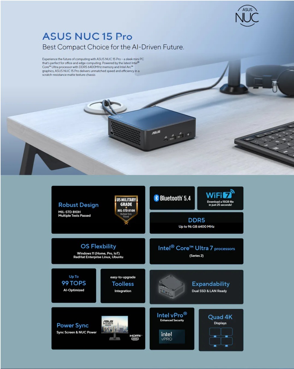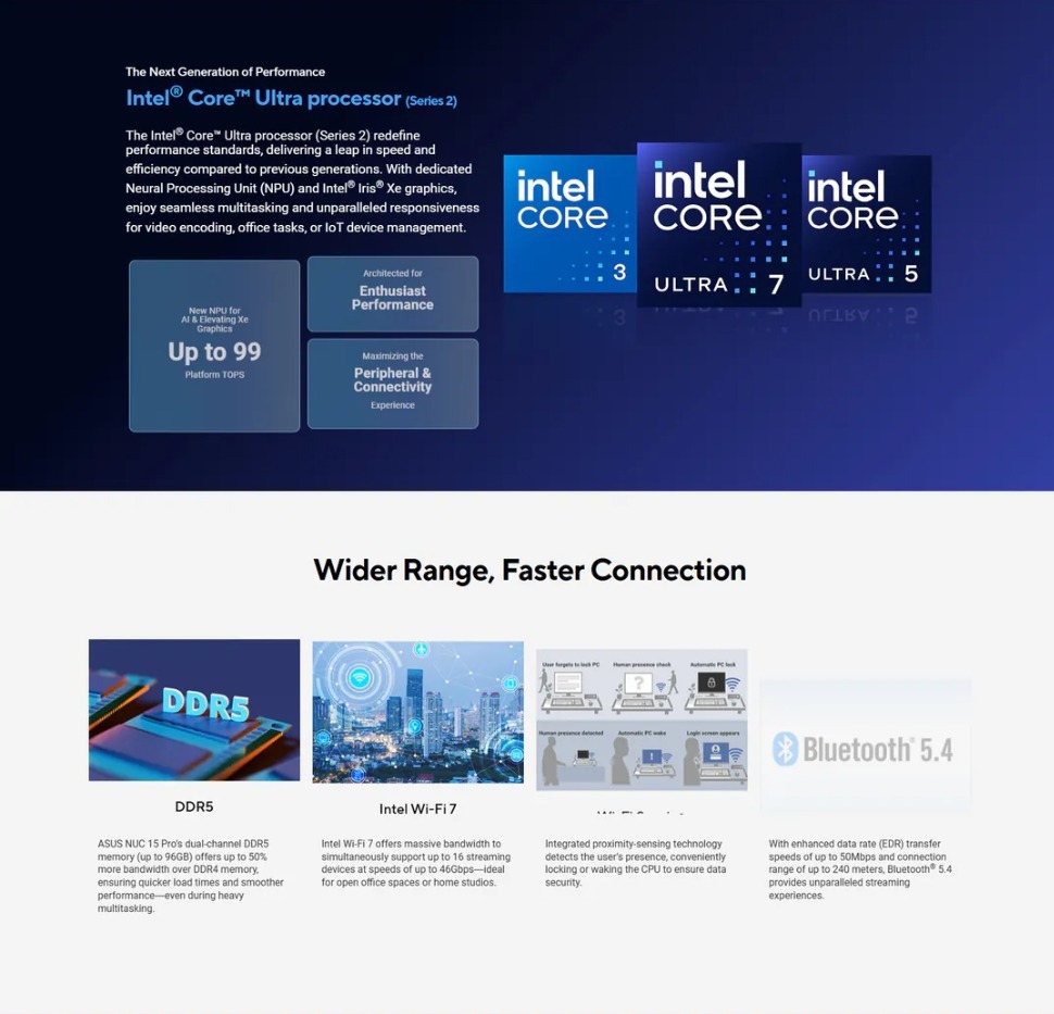 AI-Enabled Mini PC Powered by Intel® Core™ Ultra processors (Series 2). Designed as the best compact choice for the AI-driven future.