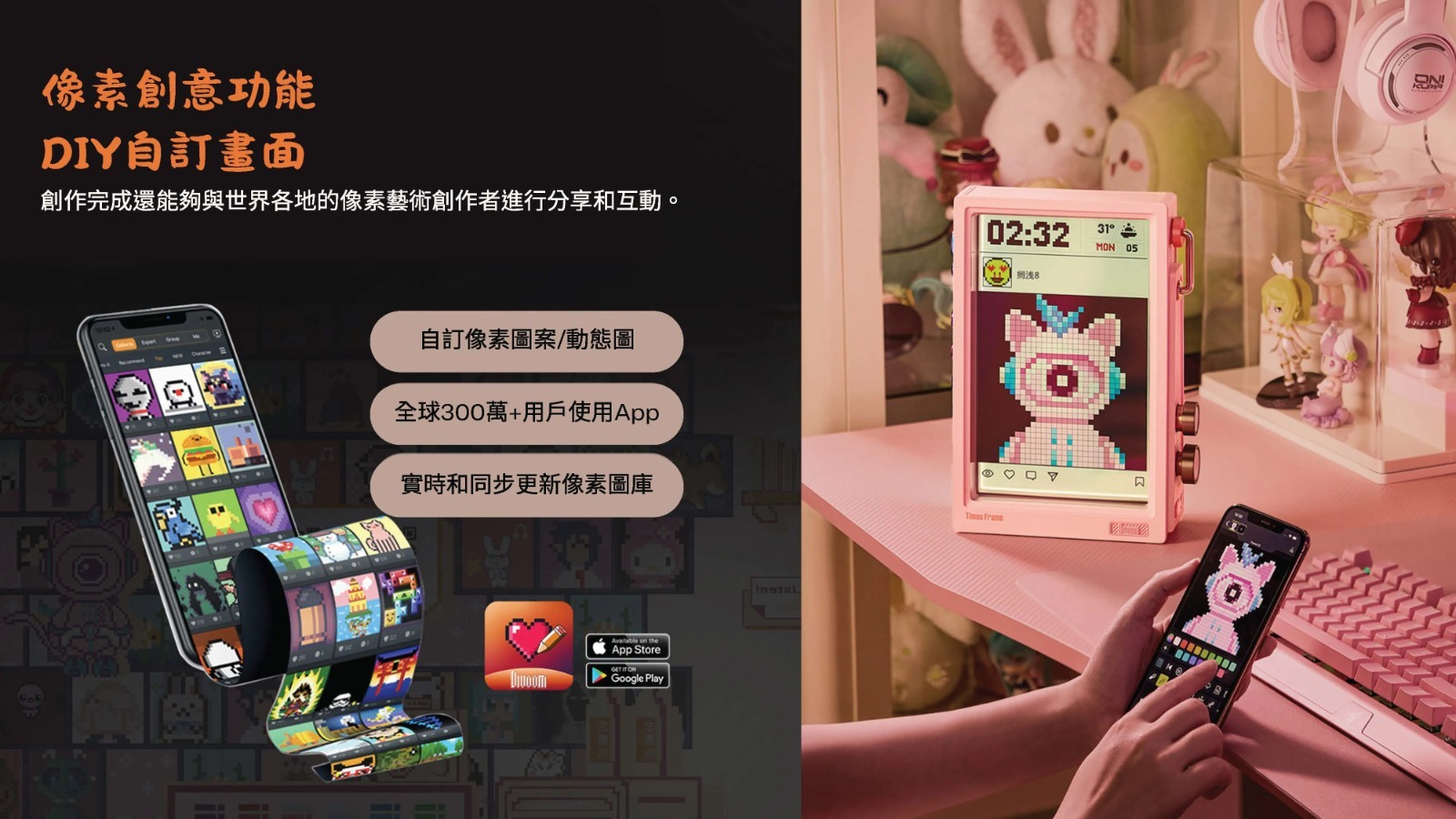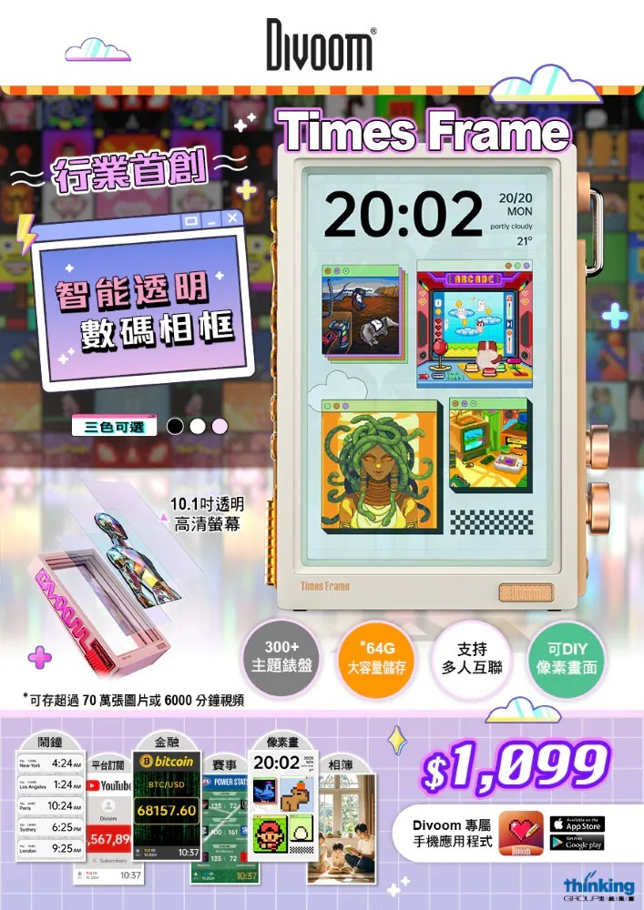 自由創作像素作品,即時顯示於 Times Frame