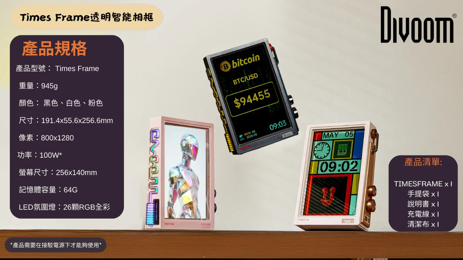 *產品需要在接駁電源下才能夠使用