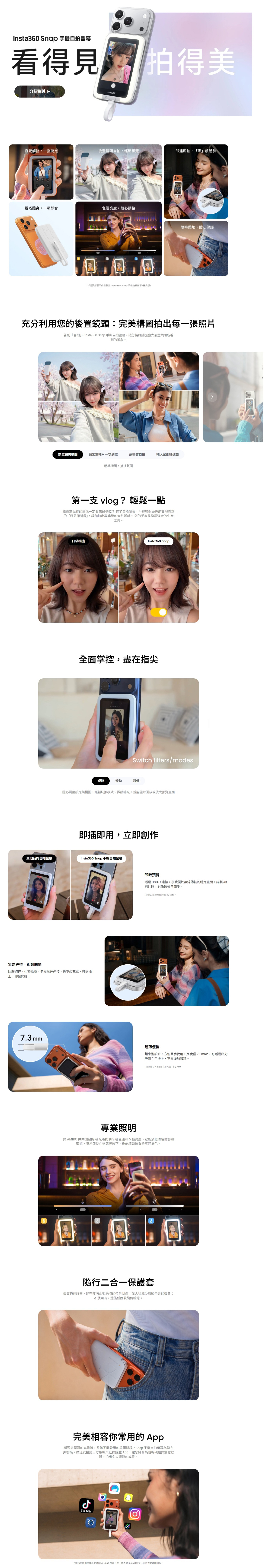 完美相容您喜愛的第三方相機 App,讓拍攝與剪輯更具彈性。