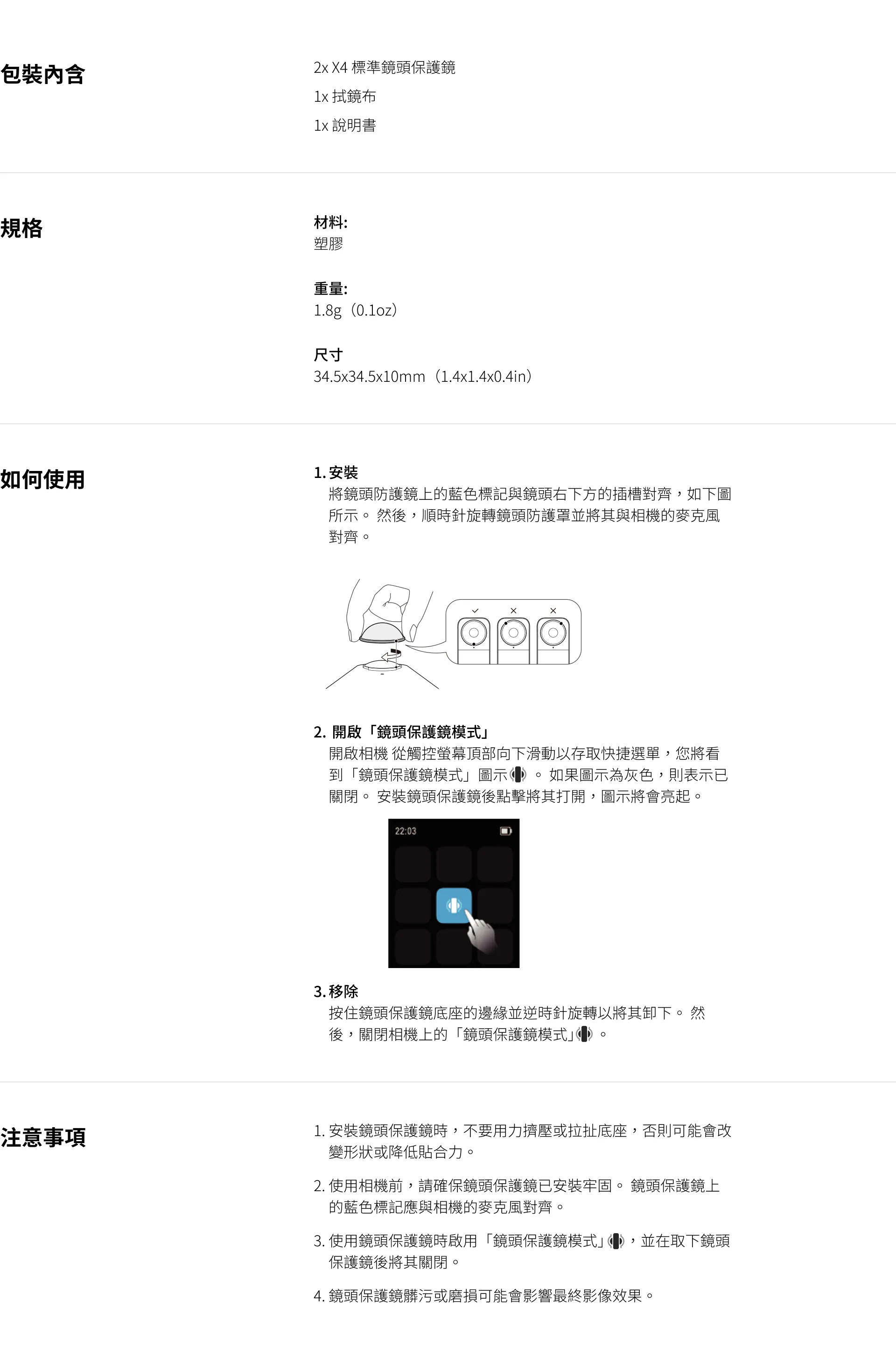為 X4 鏡頭提供專門保護,防止灰塵、刮傷和日常使用。