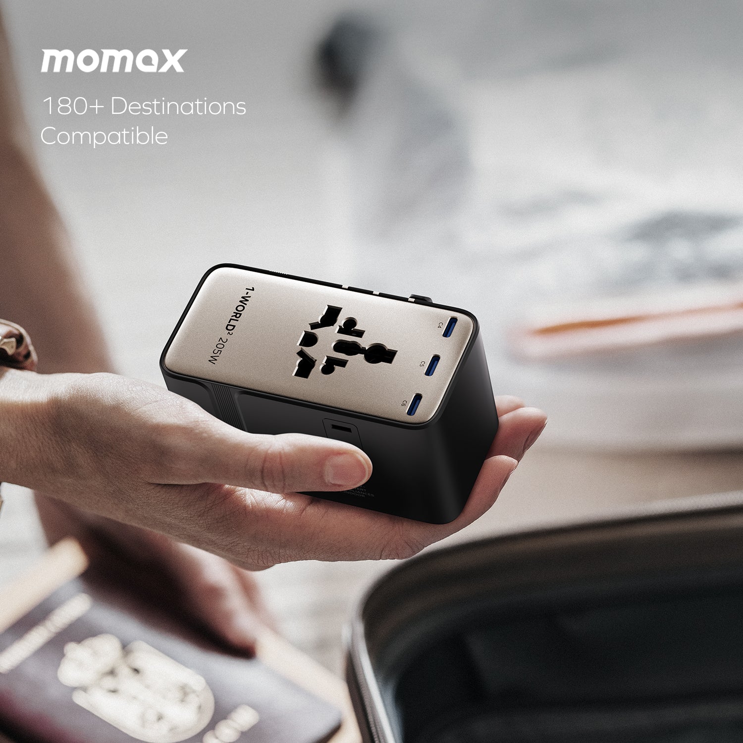 無論您走到哪裡,都可攜帶時尚精緻的 1-World²,享受在 180 多個國家/地區為所有設備充電的自由。