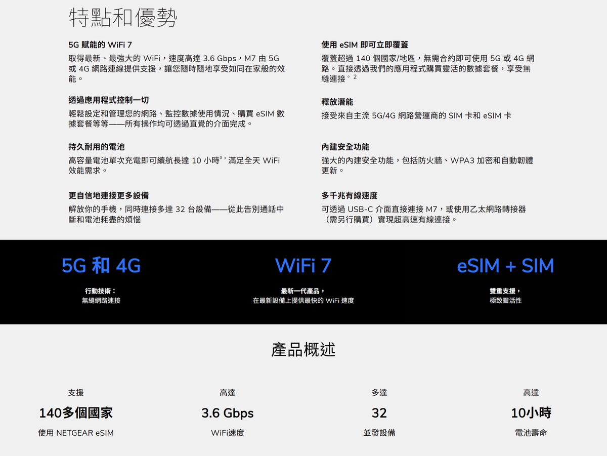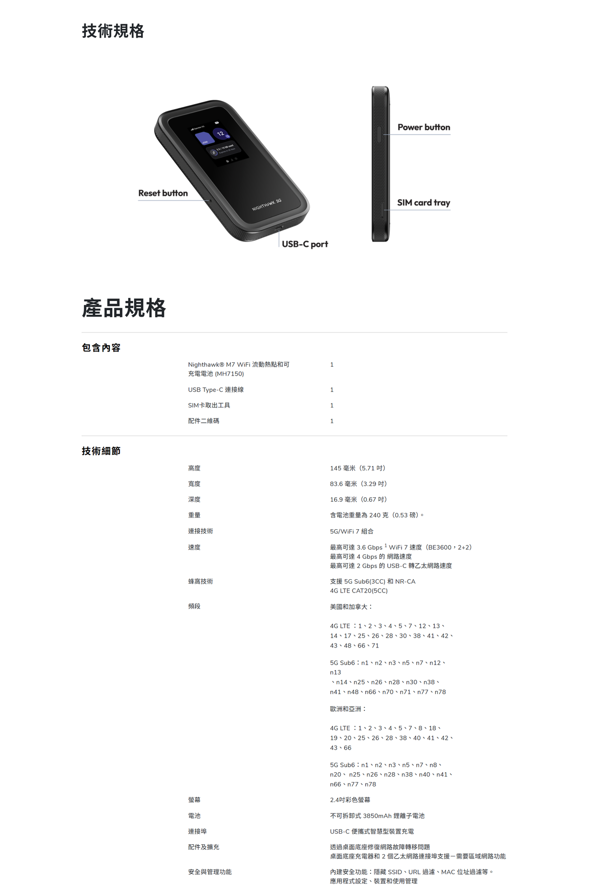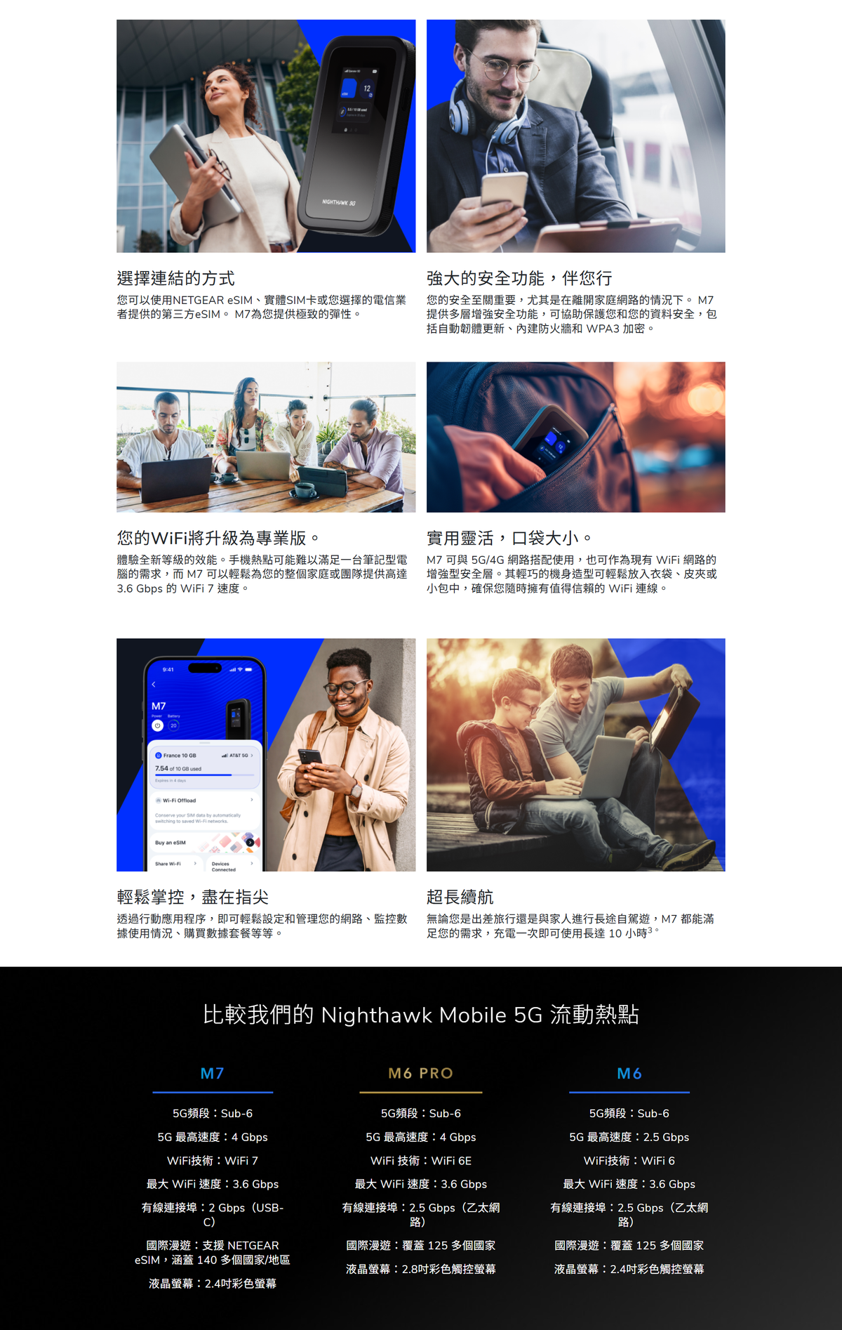 Nighthawk 5G M7 WiFi 7 流動熱點路由器(MH7150),支援 eSIM,讓您隨時隨地體驗高速 WiFi 7,並享受增強的安全性和隱私保護,這一切都得益於 5G 的強大功能。您可以透過NETGEAR 應用程式直接購買 eSIM,並在 140 多個國家/地區立即連接 5G/4G 數據套餐。盡享自由連接,隨心所欲。