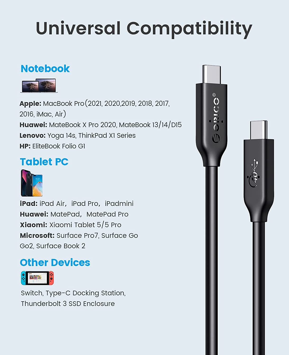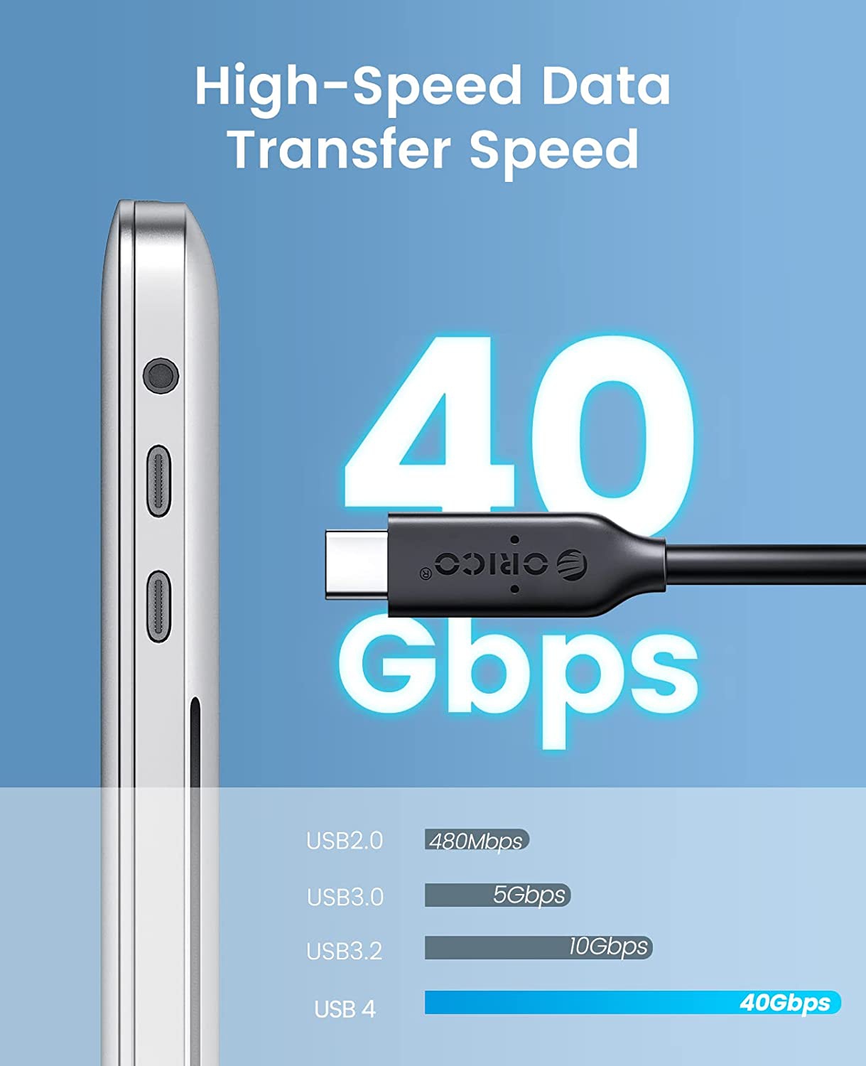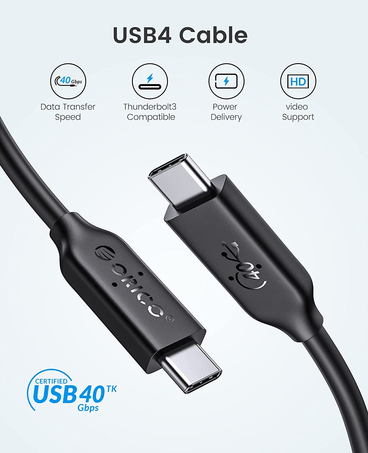 ORICO USB 4.0 Cable 40Gbps Data Transfer 100W PD, 8K@60Hz 兼容 雷電3/ USB3.2/ USB 3.1 [U4C08]