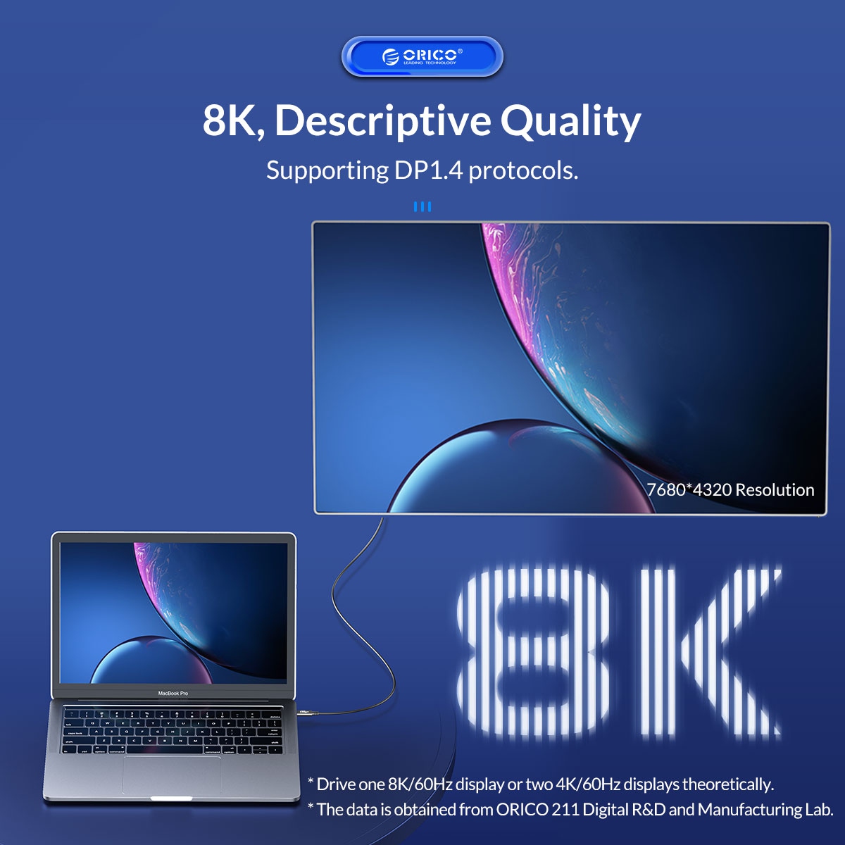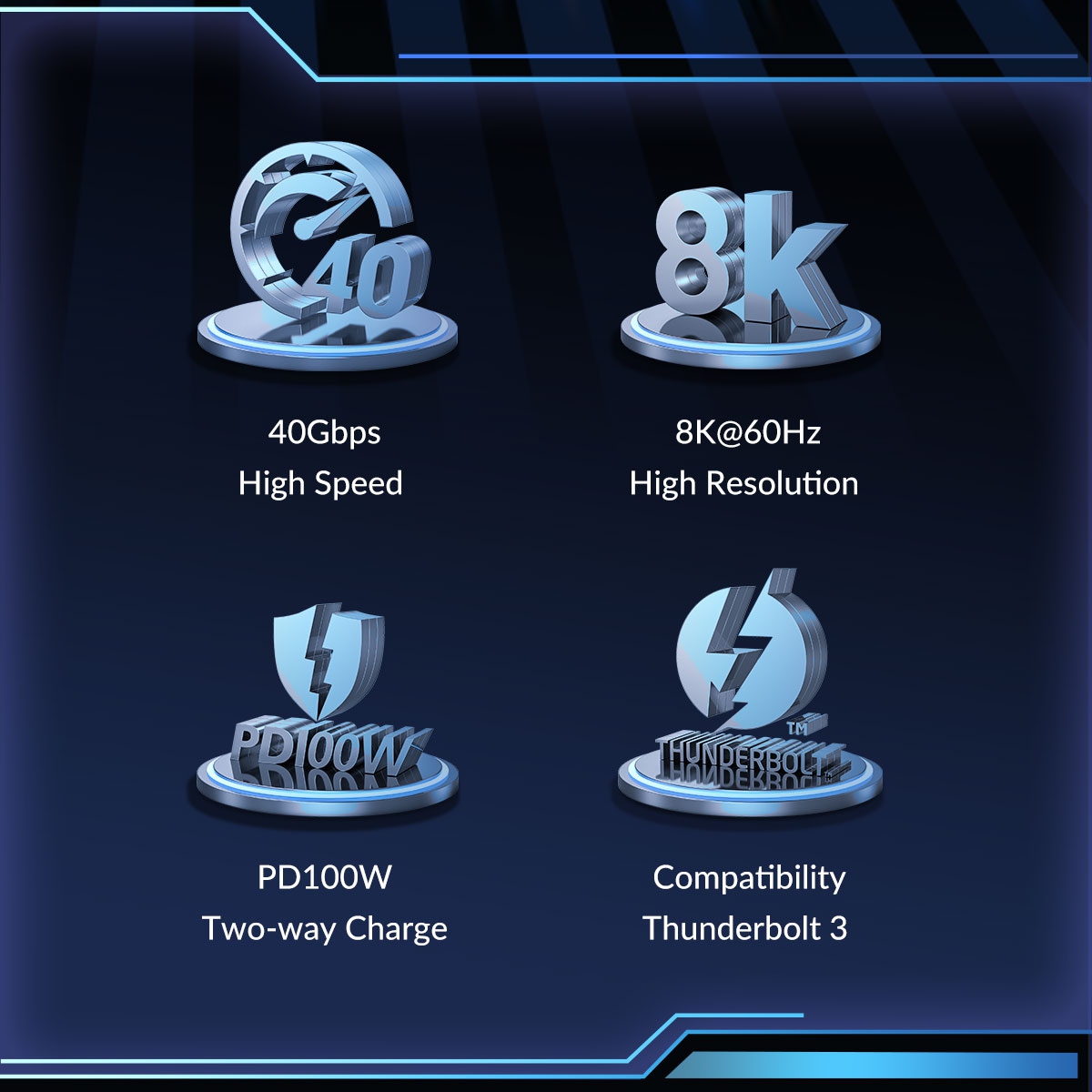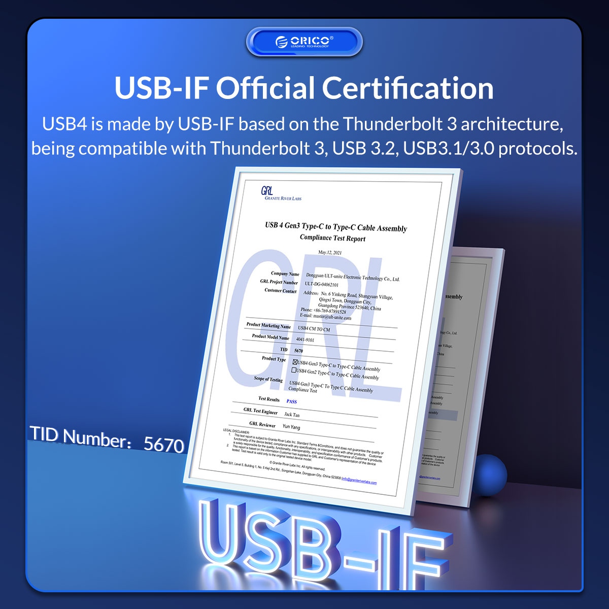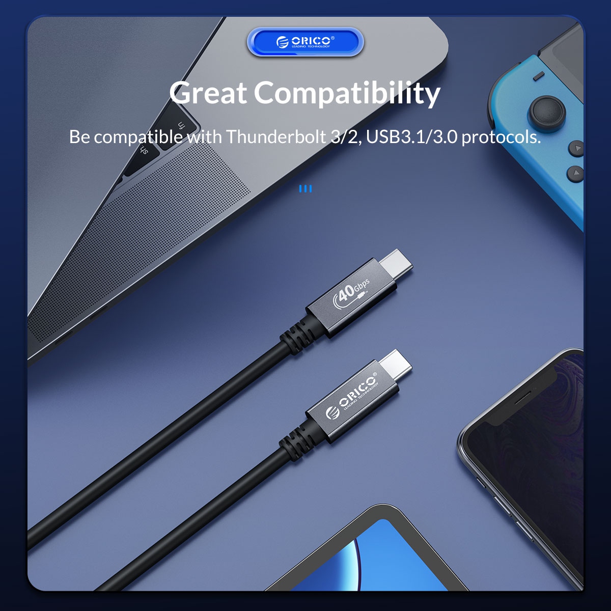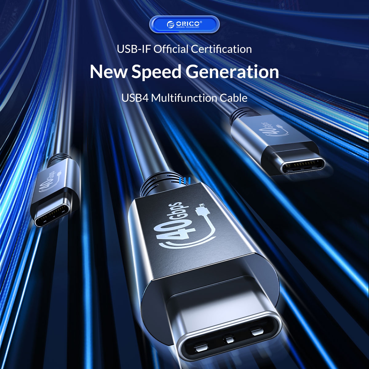 ORICO USB 4.0 Cable 40Gbps Data Transfer 100W PD, 8K@60Hz 兼容 雷電3/ USB3.2/ USB 3.1 線長 [U4A]