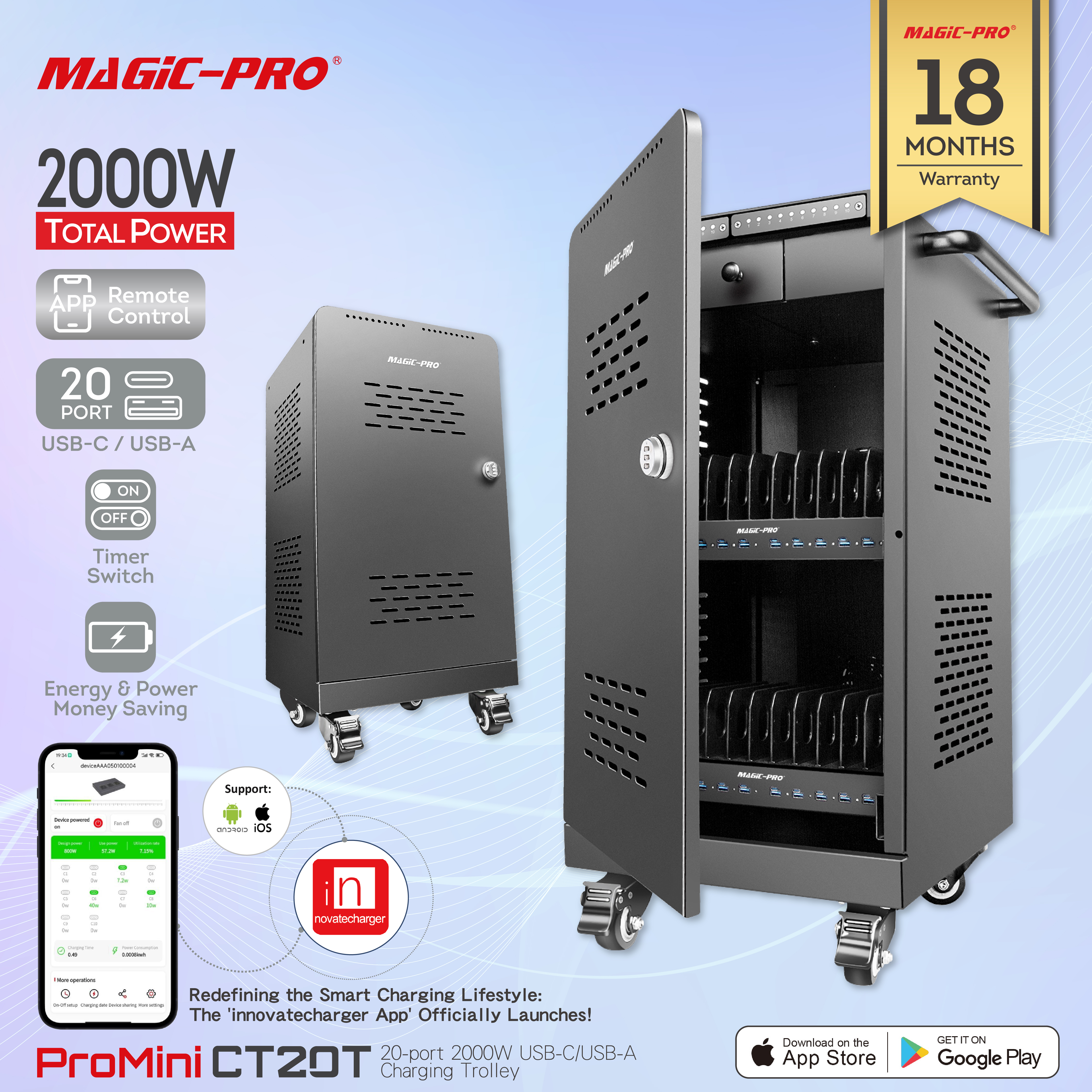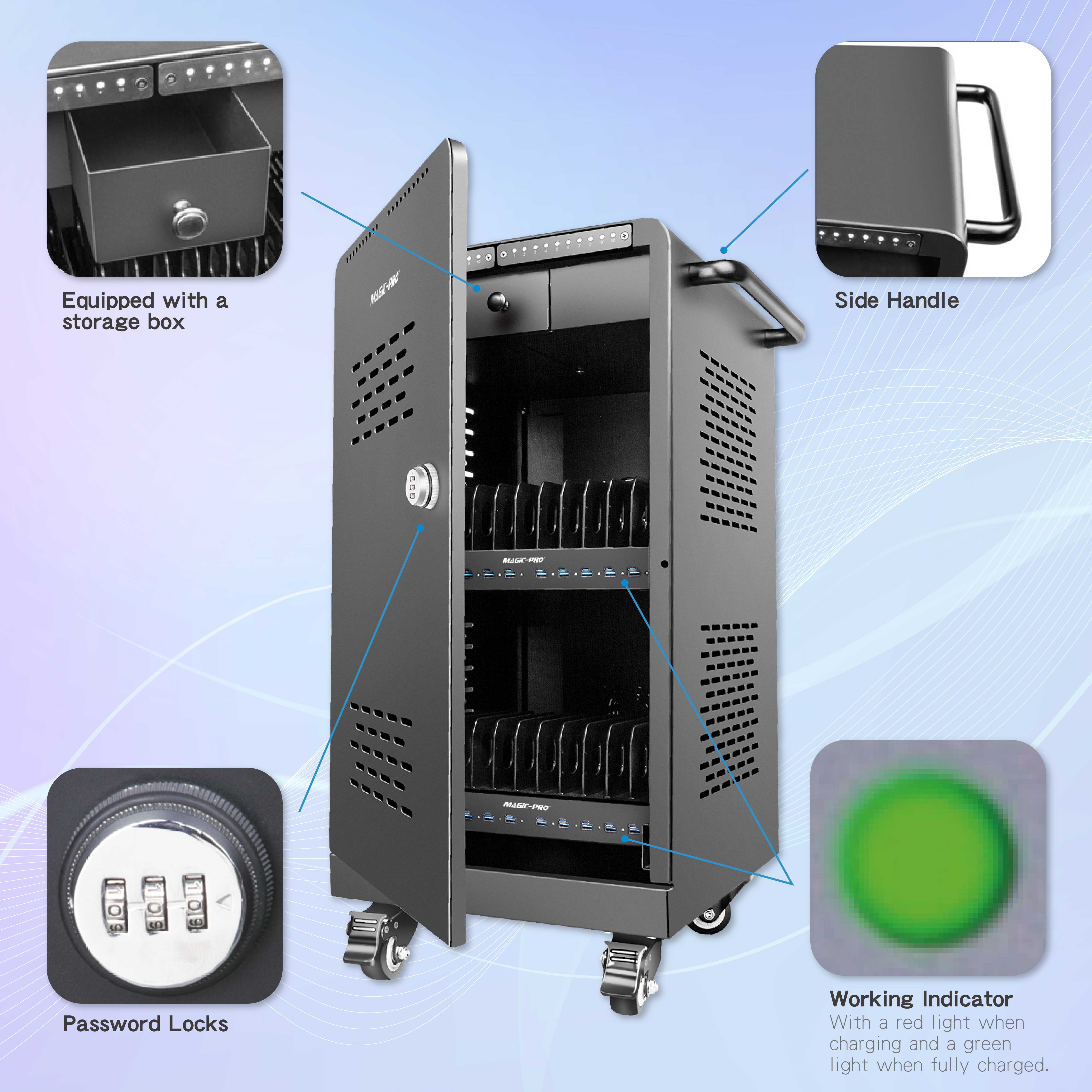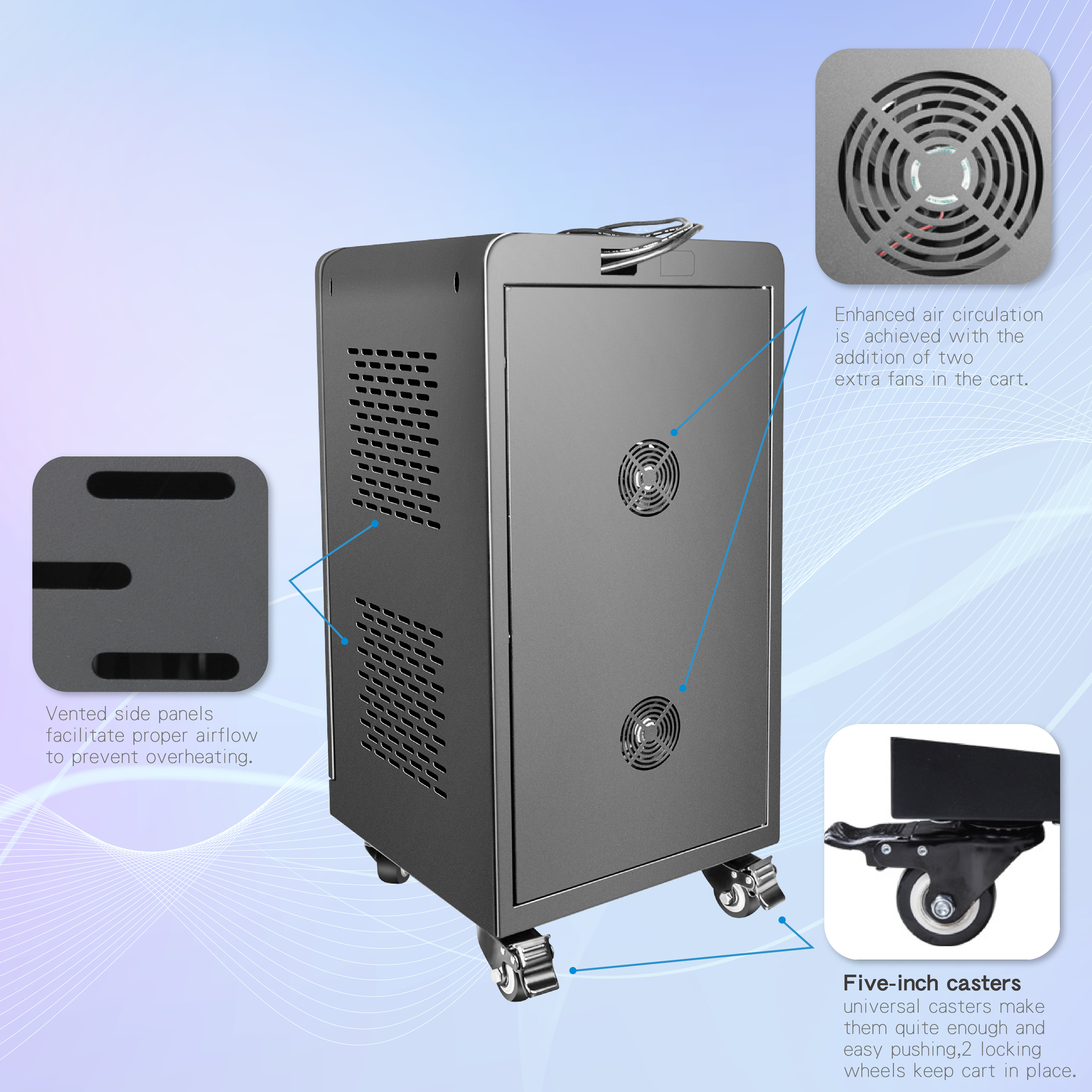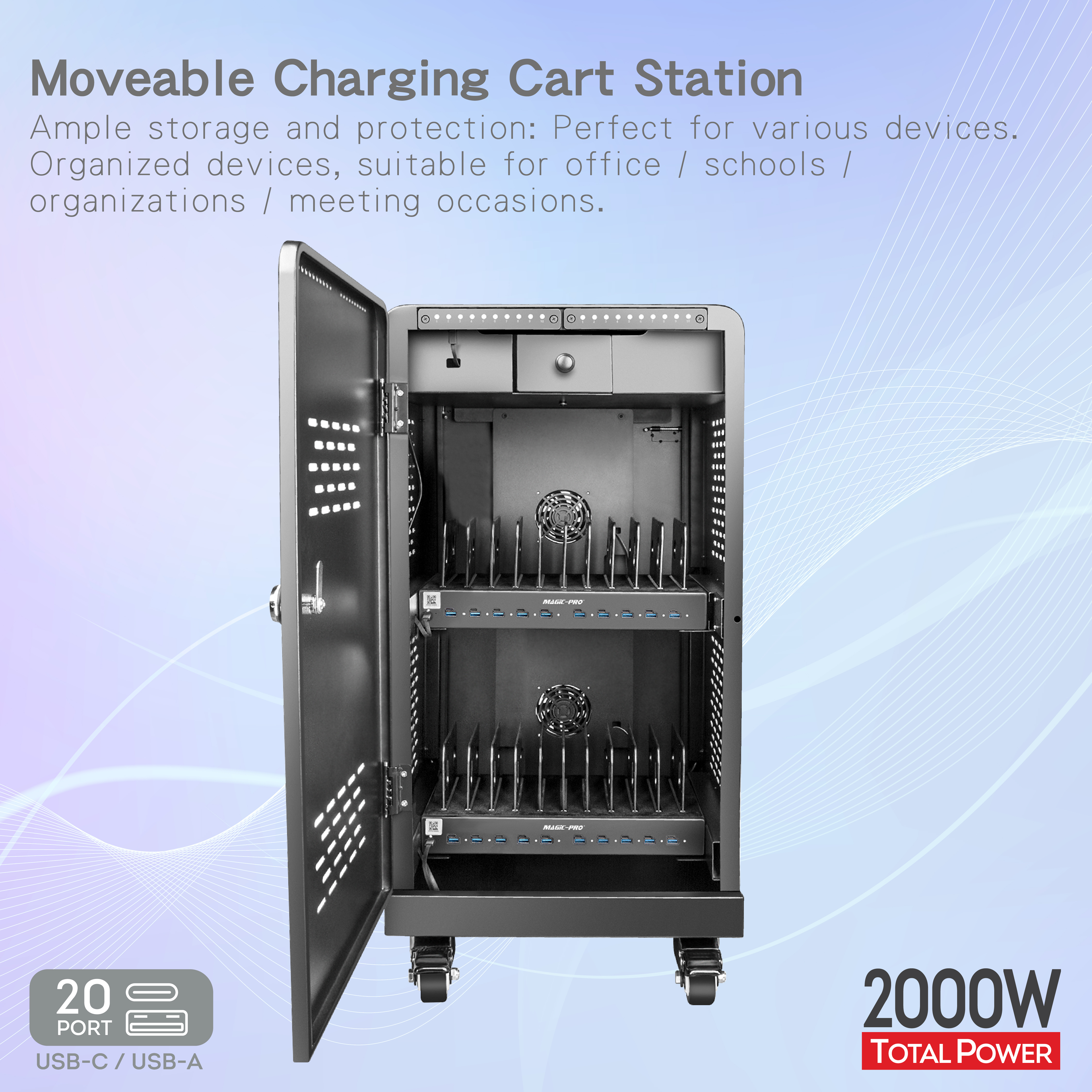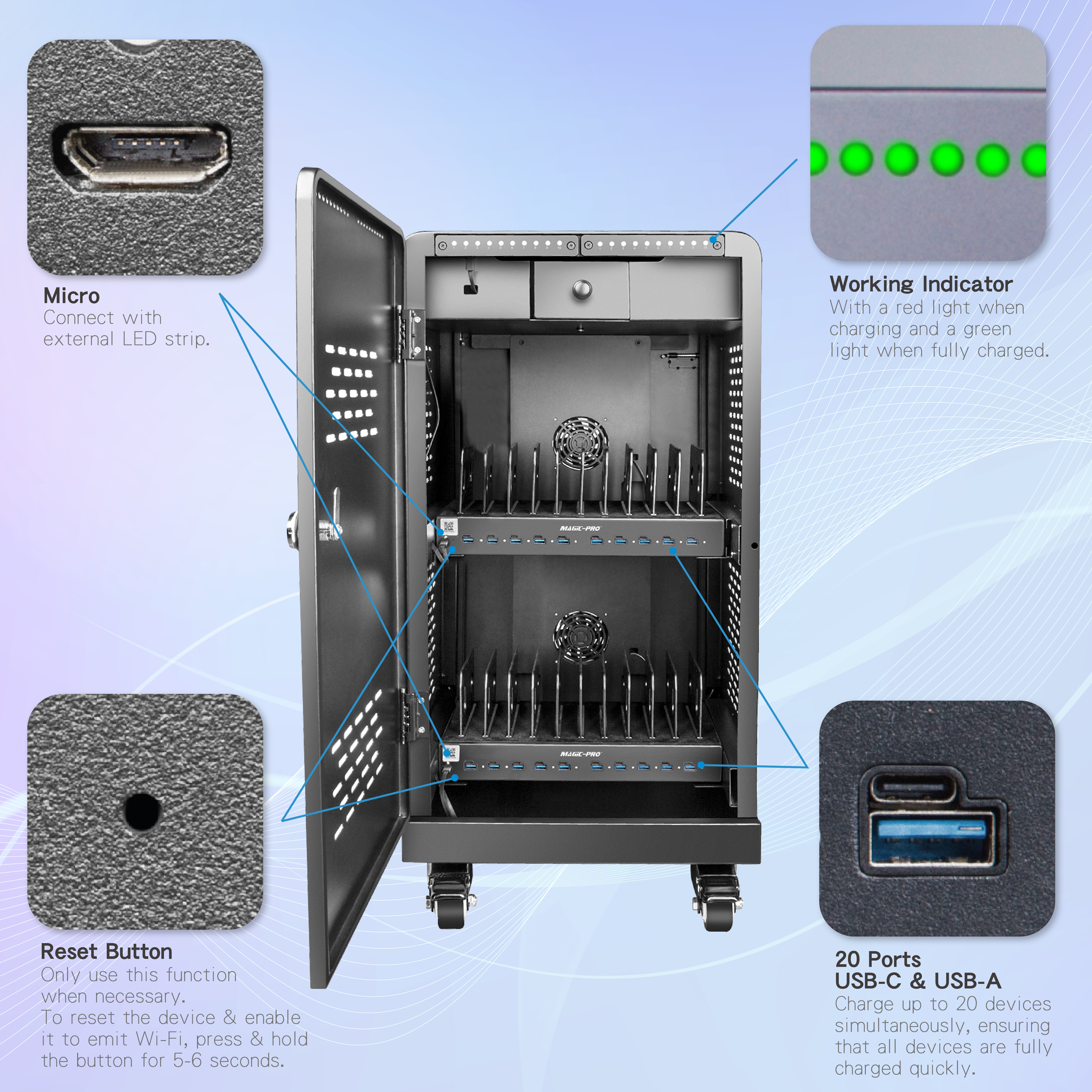 充足儲藏空間,輕鬆管理平板電腦,分別能為多達20 台平板電腦同時充電*