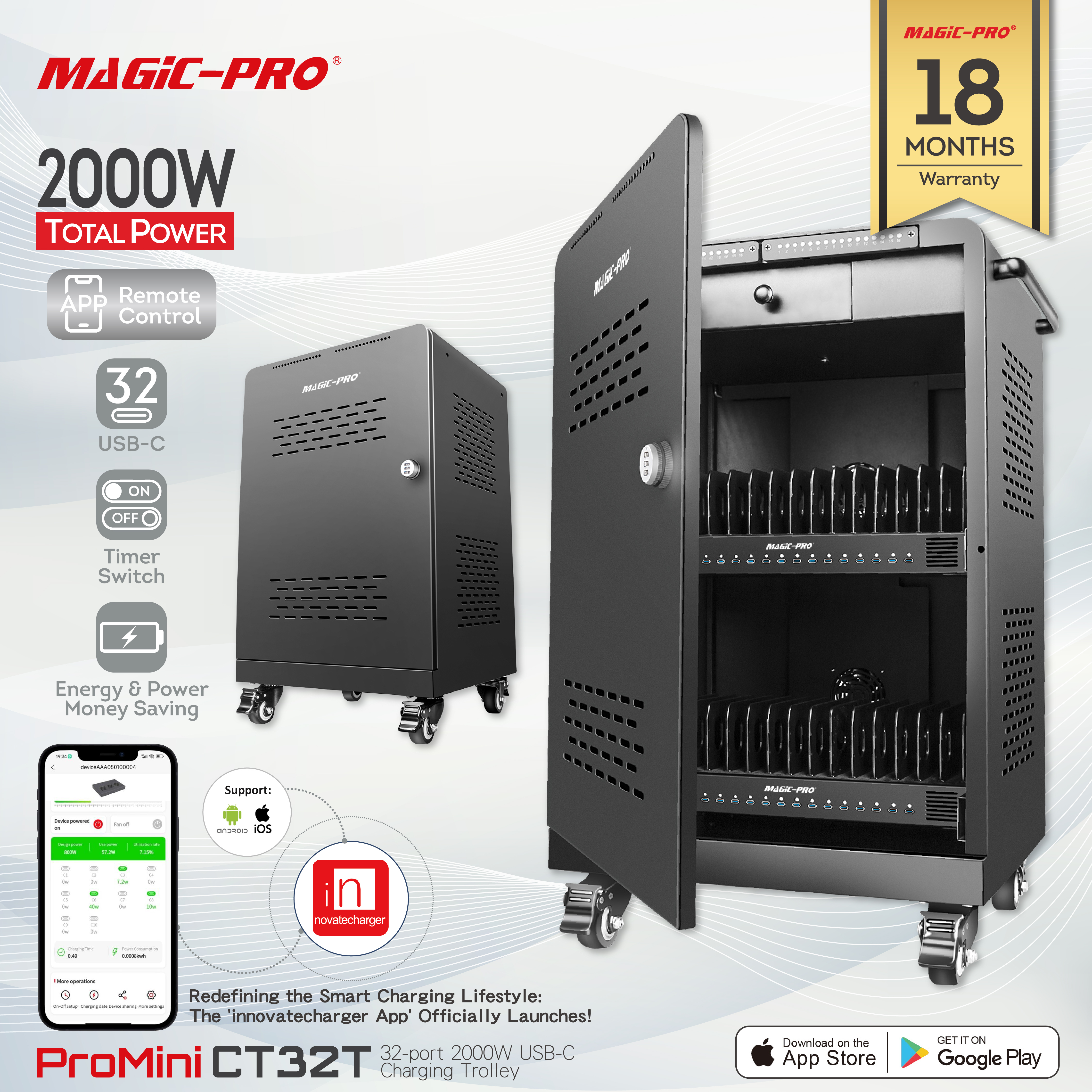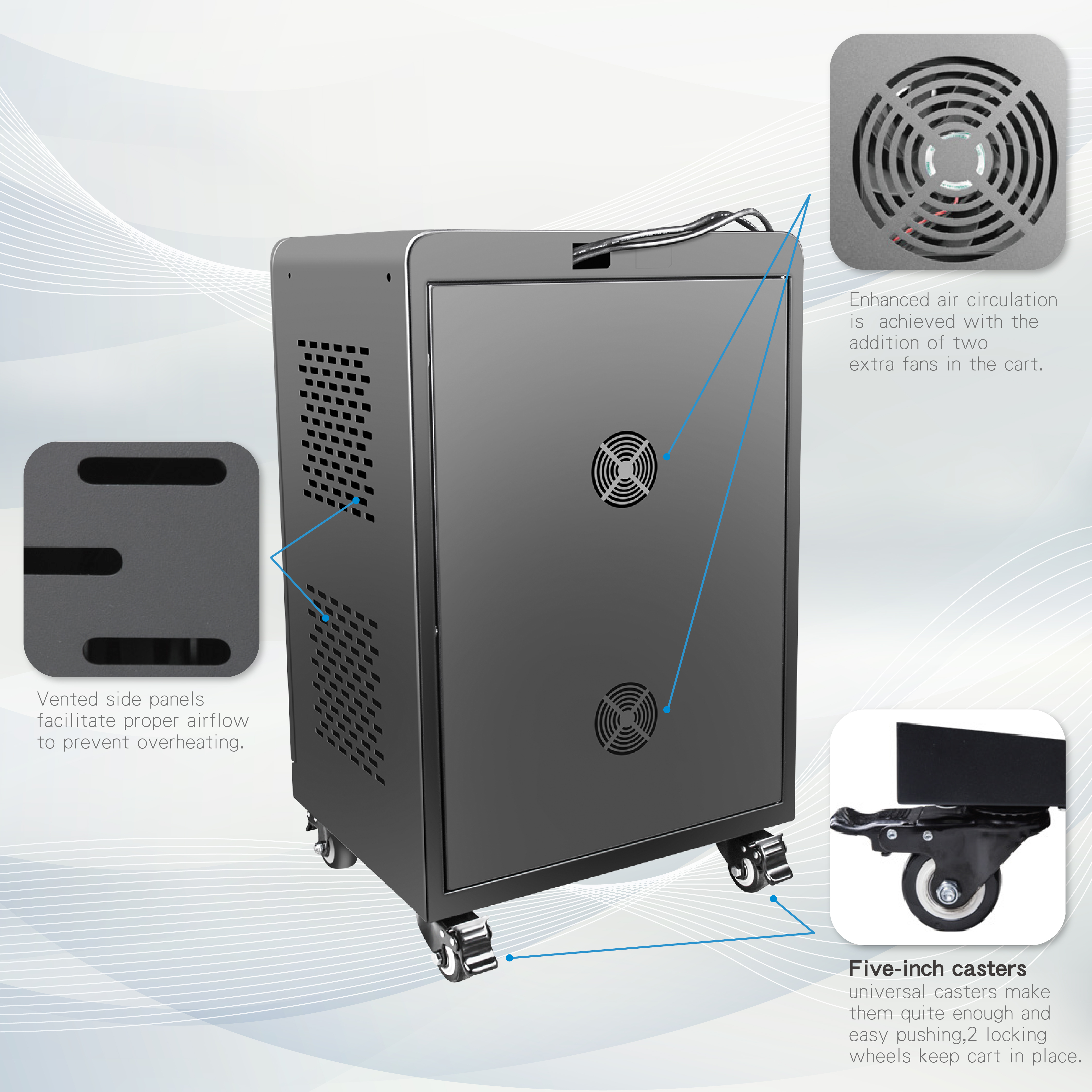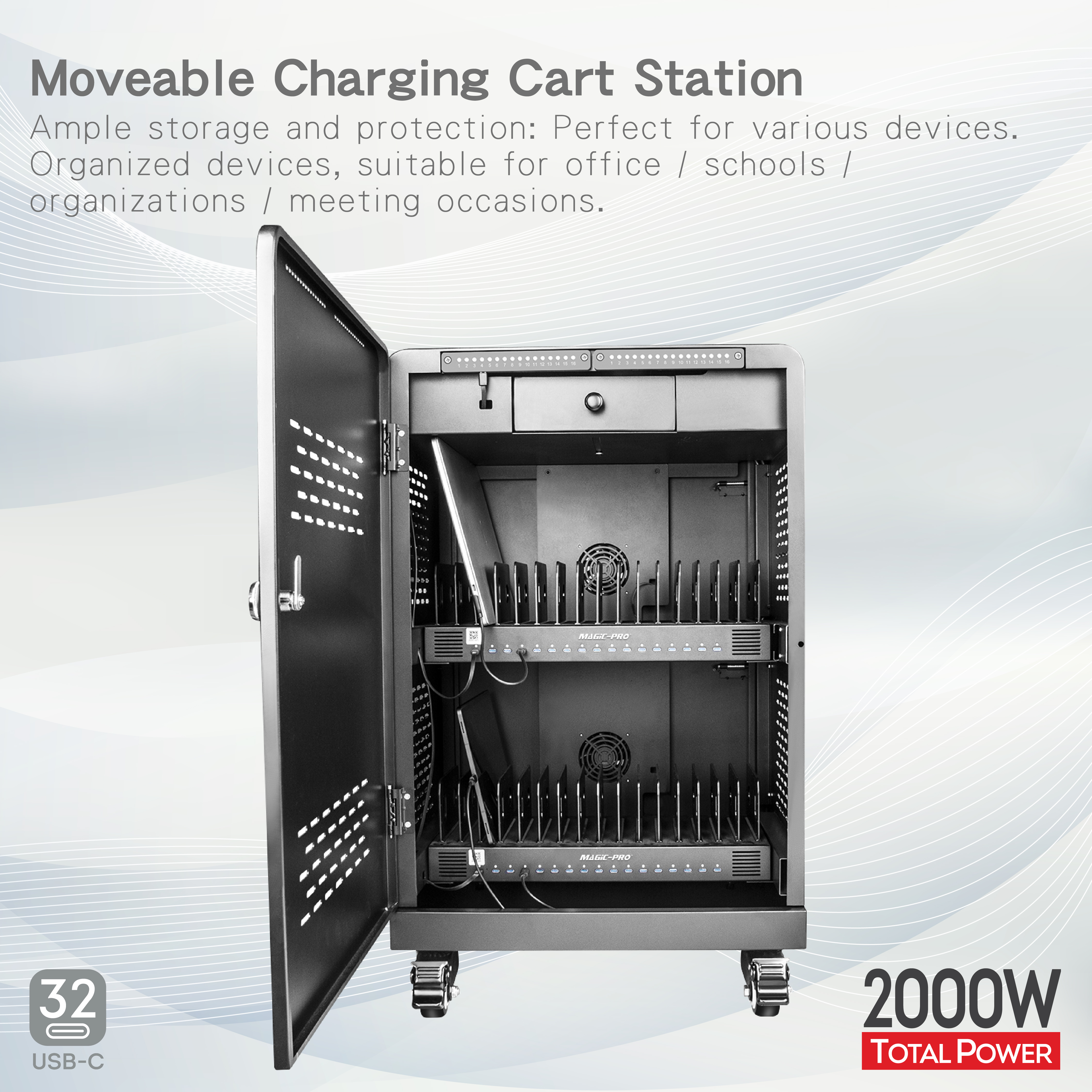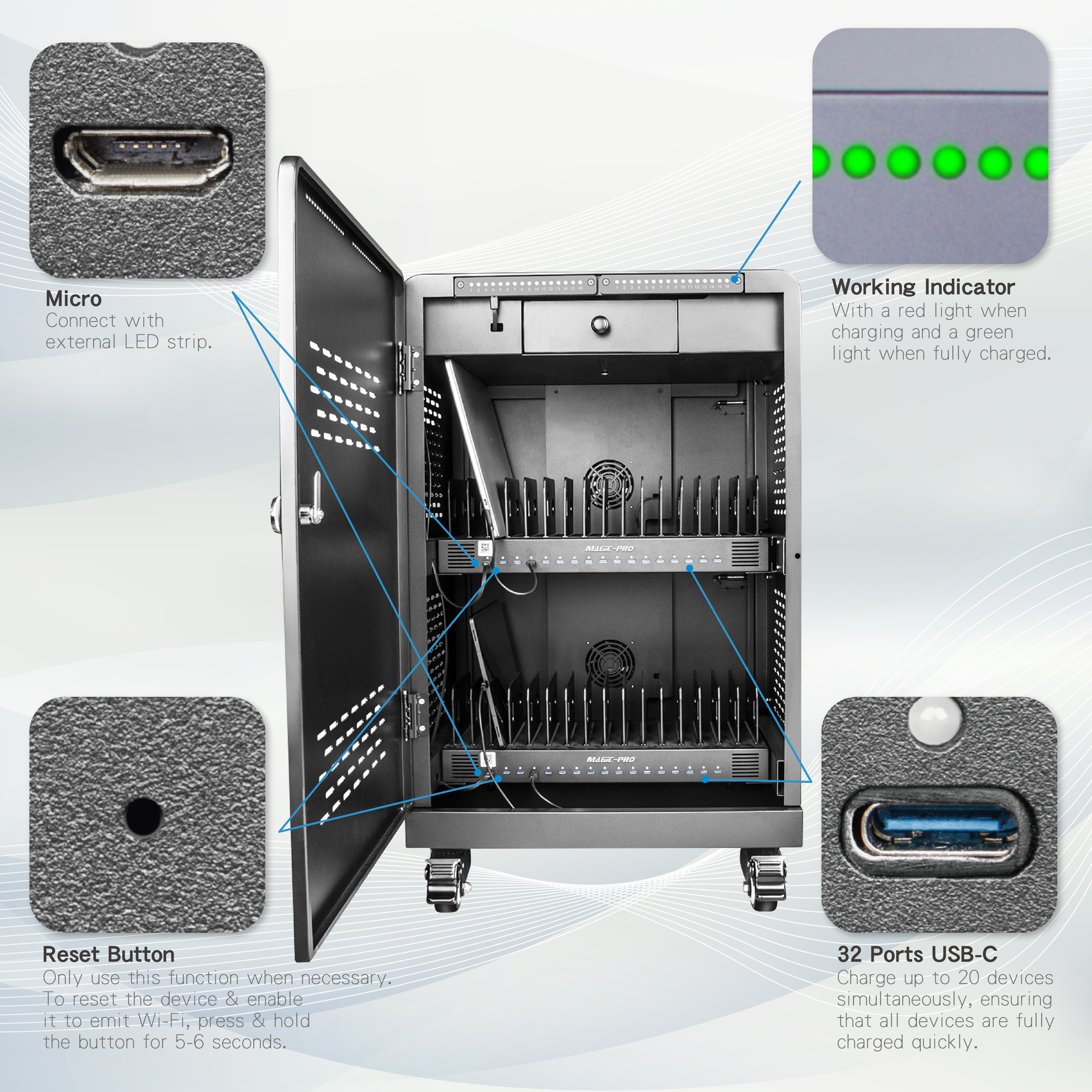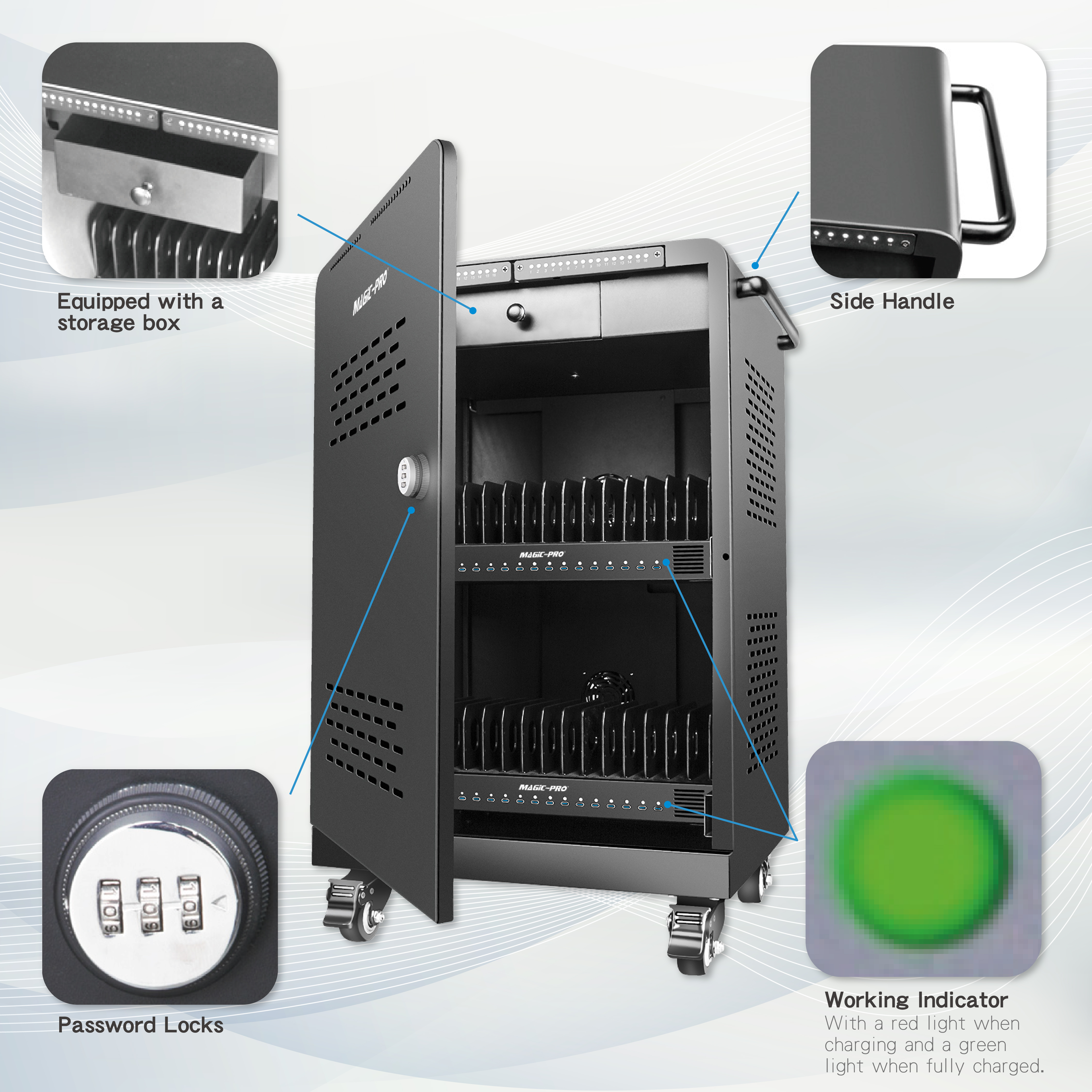 充足儲藏空間,輕鬆管理平板電腦,分別能為多達32 台平板電腦同時充電*