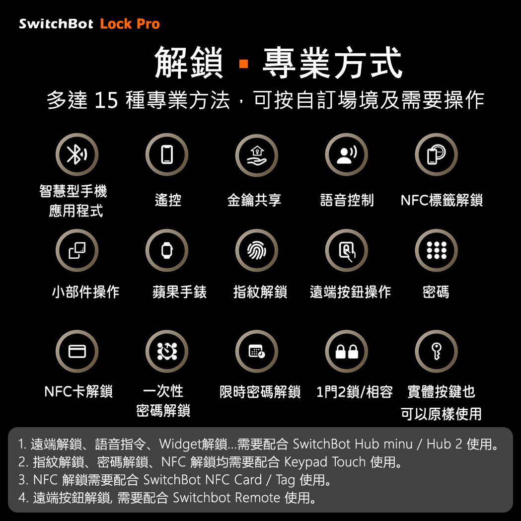 您可以享受多達 15 種解鎖方式,包括指紋解鎖、一次性密碼、定時密碼、遠端解鎖、語音命令解鎖等。